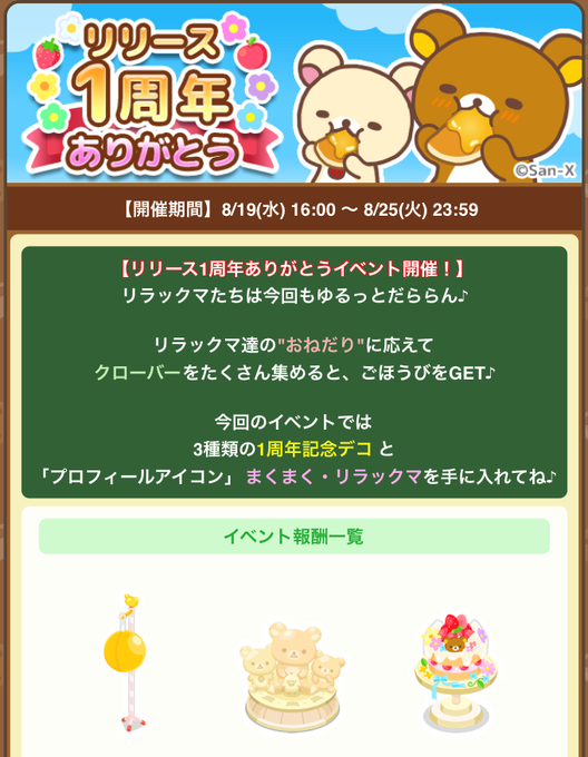 リラックマ 公式twitterにて 夏日記 スタート 8月2日パンツの日にはおニューのパンツでごきげんさん にじめん
