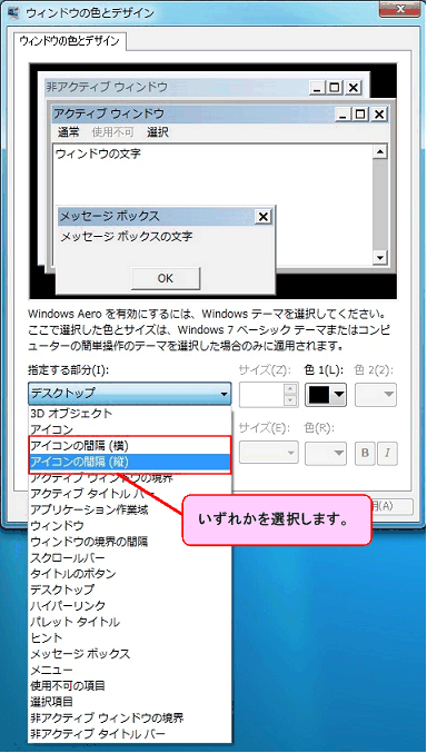 特定の項目 アイコン メニュー等 のテキストサイズのみを変更する方法 windows 7 ドスパラ サポートfaq よくあるご質問 お客様の 困った や 知りたい にお応えします