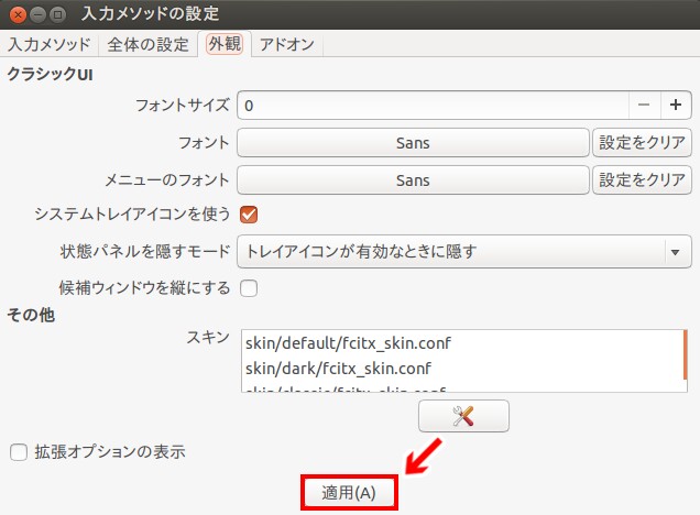 ubuntu fcitx その19 スキンを編集する スキンの情報を編集する スキンのフォントやカラーリングを編集する スキンのフォント その1 kledgeb