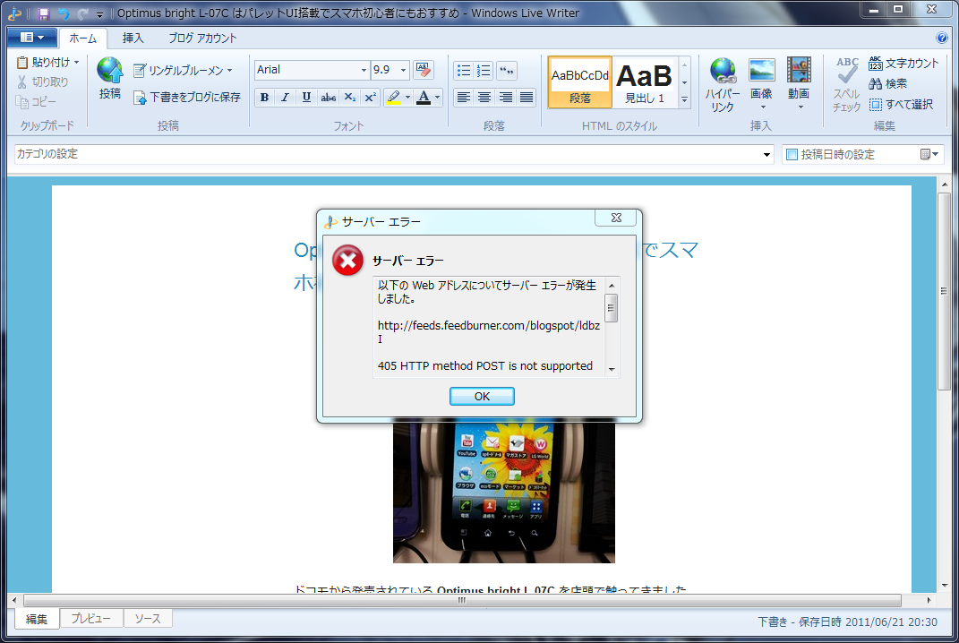 windows live writerでbloggerに投稿しようとするとエラーが出て投稿できない リンゲルブルーメン