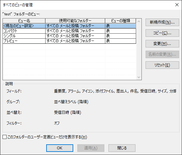 outlook2013設定画面について